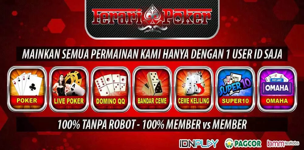Feraripoker adalah agen resmi yang bergabung dengan idnplay dan memiliki jenis permainan idn poker online merupakan jenis permainan judi yang menggunakan kartu secara online yang sering dimainkan oleh pecinta judi poker di indonesia. Karena hampir semua petaruh judi kartu online pasti pernah menikmati keseruan bermain poker online. Hal ini memang sudah tidak heran lagi karena banyak pemain yang beradu strategi hingga bisa merasakan pertandingan yang mirip dengan kompetisi dunia dalam bermain poker online